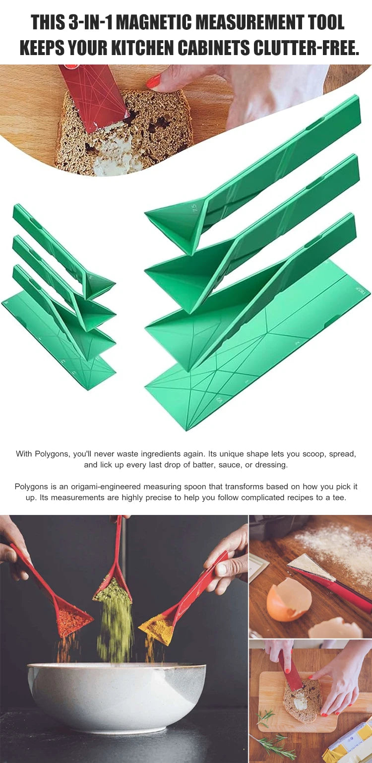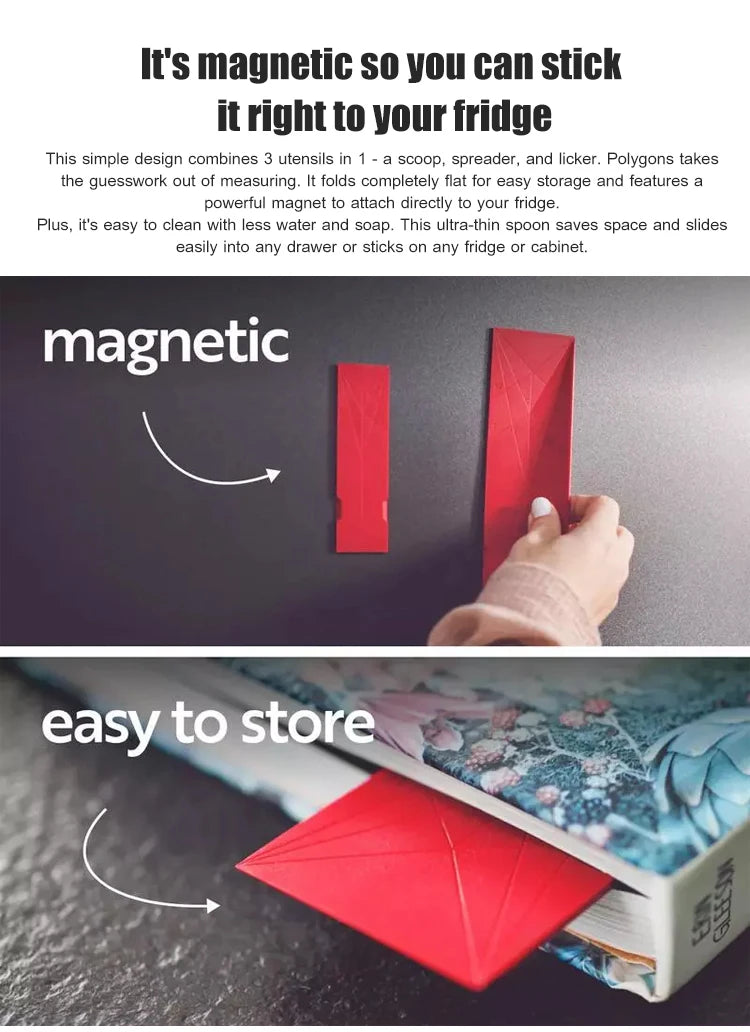 - ✅ SPACE-SAVING FOLDING MEASURING SPOONS | MAGNETIC STORAGE Folding measuring spoons fold flat for ultra-compact storage—hang on fridge or fit in tight spaces. No more cluttered drawers with this clever magnetic spoons set.