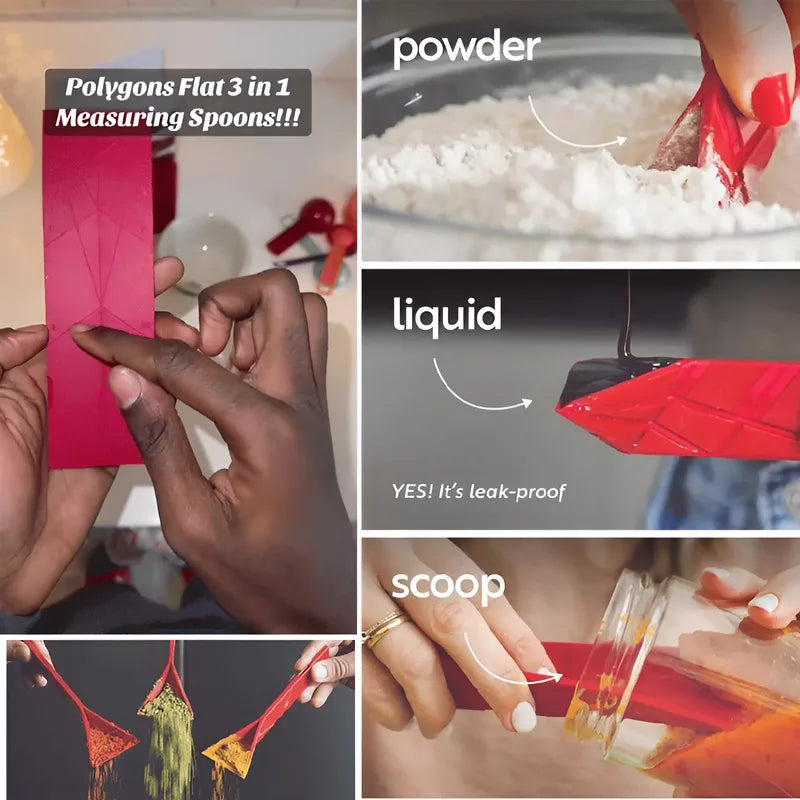 - ✅ 6-IN-1 CAPACITY MEASURING SPOONS SET | 3-IN-1 FOLDING DESIGN Replace 6 traditional spoons with our adjustable measuring spoons set—large spoon: 2 Tbsp/1 Tbsp/½ Tbsp; small spoon: 1 tsp/½ tsp/¼ tsp. Flat 3-in-1 folding design for precise liquid and dry measurements without clutter.
